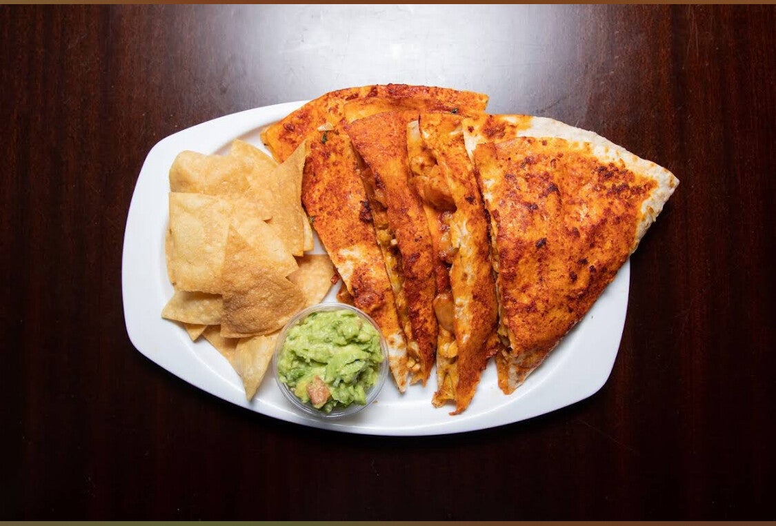 Flour Tortilla, Shredded Cheese, Shrimp tossed in a Chipotle Adobe sauce, served with handmade corn tortilla chips and guacamole.